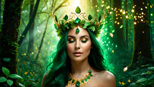 Afbeeldingen - https://afbeeldingen.net/ai/betoverende-bosnimf-met-smaragdgroene-kr-5f7e189