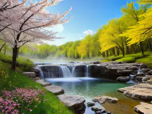 Afbeeldingen - https://afbeeldingen.net/ai/betoverende-waterval-in-lentetuin-met-bl-c865617