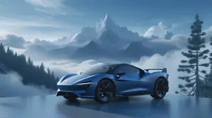Afbeeldingen - https://afbeeldingen.net/ai/blauwe-sportwagen-in-besneeuwd-berglands-96e4511