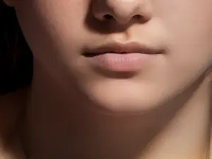 Stijlvolle close-up opname van perfect verzorgde, natuurlijke lippen met een subtiele glans. De zachte belichting en neutrale achtergrond maken deze foto ideaal voor beauty campagnes, cosmetica marketing of professionele visagie portfolio's. De natuurlijke uitstraling past perfect bij hedendaagse schoonheidsidealen.