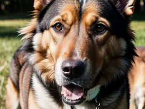 Expressief portret van een vriendelijke herdershond met prachtige bruine en zwarte vachttinten. De warme bruine ogen en vrolijke uitdrukking stralen persoonlijkheid uit. perfect voor gebruik in dierenartspraktijken, hondentrainingsscholen of huisdierenverzekering campagnes. De scherpe detailfoto toont de natuurlijke schoonheid van deze trouwe vi...