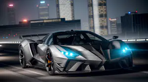 Futuristische Hypercar in Nachtelijke Stad 4K Wallpaper AI-gegenereerd