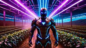 Afbeeldingen - https://afbeeldingen.net/ai/futuristische-robot-in-neonverlichte-kas-6bffccc