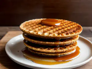 Afbeeldingen - https://afbeeldingen.net/ai/gestapelde-stroopwafels-met-goudbruine-k-c078551
