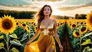 Afbeeldingen - https://afbeeldingen.net/ai/gouden-jurk-in-zonnebloemenveld-tijdens--344fa37