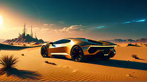 Afbeeldingen - https://afbeeldingen.net/ai/gouden-supersportwagen-in-sci-fi-woestij-027faa4