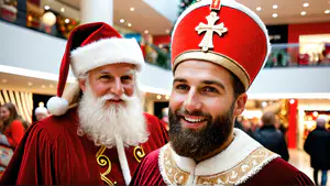 Kerstman en Sinterklaas samen op feestelijk winterevenement AI-gegenereerd
