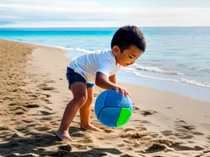 Afbeeldingen - https://afbeeldingen.net/ai/kind-speelt-met-kleurrijke-strandbal-op--d7eb918