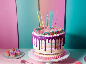 Afbeeldingen - https://afbeeldingen.net/ai/kleurrijke-drip-cake-met-paarse-glazuur-349687e