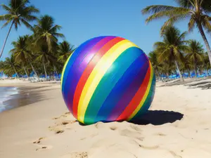 Afbeeldingen - https://afbeeldingen.net/ai/kleurrijke-strandbal-op-tropisch-palmens-7f6ad80