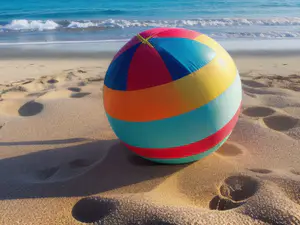 Afbeeldingen - https://afbeeldingen.net/ai/kleurrijke-strandbal-op-zonnig-strand-me-b0aebd6