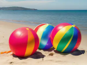Afbeeldingen - https://afbeeldingen.net/ai/kleurrijke-strandballen-op-zonnig-tropis-5361477
