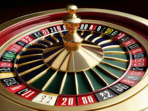 Stijlvolle close-up van een professioneel roulettewiel met verfijnde gouden accenten. De klassieke combinatie van diepgroen, vuurrood en goud straalt pure luxe uit. perfect voor casino marketing, entertainment websites of sfeerbeelden van exclusieve speelgelegenheden.