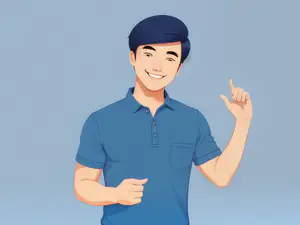 Moderne illustratie professional in casual poloshirt wijst omhoog AI-gegenereerd