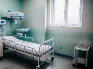 Moderne ziekenhuiskamer met medische apparatuur en verstelbaar bed AI-gegenereerd