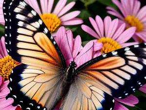 Afbeeldingen - https://afbeeldingen.net/ai/monarchvlinder-op-roze-madeliefjes-in-na-bd15de5
