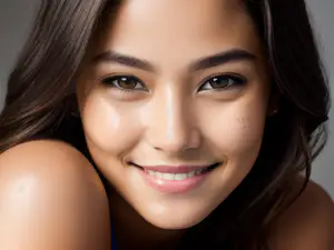 Natuurlijke beauty portretfoto met stralende glimlach en zachte AI-gegenereerd