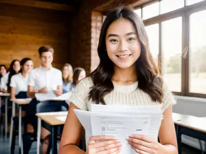Positieve studiesfeer in modern klaslokaal met natuurlijk daglicht AI-gegenereerd