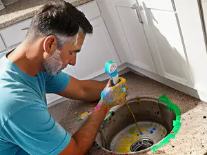 Professionele ontstopping van verstopte gootsteen in moderne keuken AI-gegenereerd