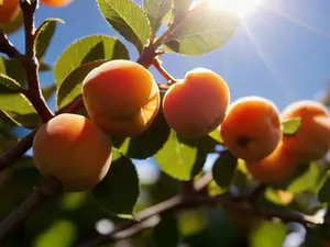 Afbeeldingen - https://afbeeldingen.net/ai/rijpe-abrikozen-aan-boom-in-zomers-zonli-5f54195