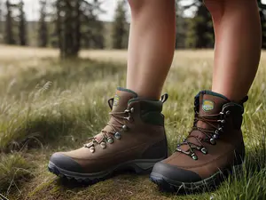 Robuuste wandelschoenen in natuurlijke omgeving tijdens zomerwandeling AI-gegenereerd