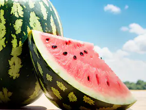 Afbeeldingen - https://afbeeldingen.net/ai/sappige-watermeloen-in-zomerse-setting-t-f384cee