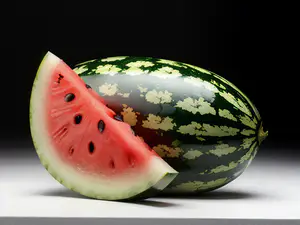 Afbeeldingen - https://afbeeldingen.net/ai/sappige-watermeloen-met-partje-op-zwarte-c422fef