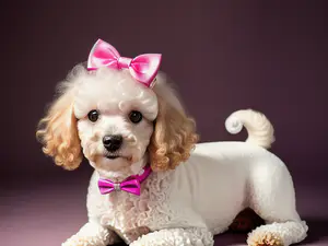 Afbeeldingen - https://afbeeldingen.net/ai/schattige-poedel-met-roze-strikjes-in-pr-0ae533e