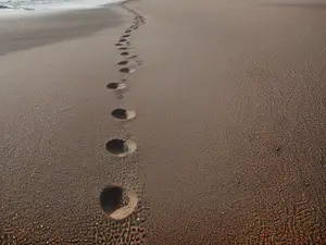 Afbeeldingen - https://afbeeldingen.net/ai/slingerende-voetsporen-in-nat-strandzand-e276891