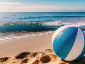 Afbeeldingen - https://afbeeldingen.net/ai/strandbal-op-zonnig-zandstrand-met-azuur-9b64777