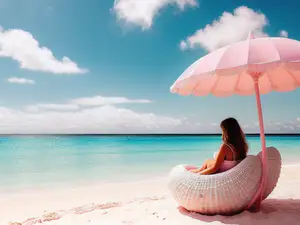 Afbeeldingen - https://afbeeldingen.net/ai/tropische-strandsfeer-met-roze-parasol-e-3ca5e58