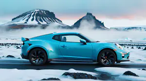 Afbeeldingen - https://afbeeldingen.net/ai/turquoise-sportwagen-op-ijslandse-winter-a74ec3e