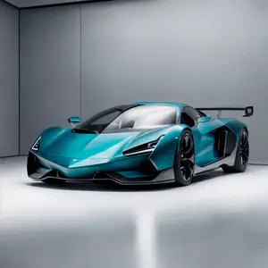 Deze turquoise supercar combineert futuristische lijnen met aerodynamische perfectie. Het originele ontwerp zonder merkidentiteit toont een visie op high-performance mobiliteit. Vastgelegd in studio-omgeving waar de matte afwerking en scherpe details optimaal tot hun recht komen.