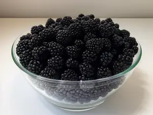 Verse bramen in glazen schaal - Sappig zomerfruit voor desserts AI-gegenereerd