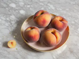 Afbeeldingen - https://afbeeldingen.net/ai/verse-perziken-op-roze-bord-tegen-marmer-1eae32f