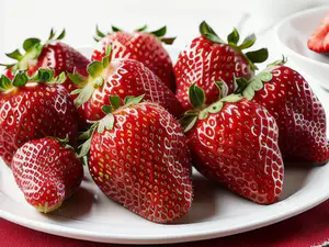 Afbeeldingen - https://afbeeldingen.net/ai/verse-rijpe-aardbeien-op-wit-bord-sappig-74f3dc1