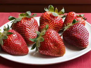 Afbeeldingen - https://afbeeldingen.net/ai/verse-sappige-aardbeien-op-wit-bord-perf-7bce3a9