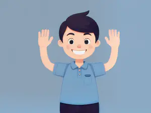 Vrolijke cartoon illustratie met zwaaiend gebaar in blauwe tinten AI-gegenereerd