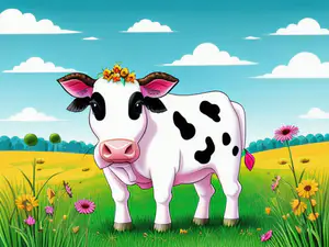 Afbeeldingen - https://afbeeldingen.net/ai/vrolijke-cartoon-koe-met-bloemen-in-weid-304559b