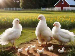 Afbeeldingen - https://afbeeldingen.net/ai/witte-kippen-met-kuikens-op-boerenerf-bi-472b702