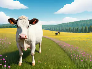 Afbeeldingen - https://afbeeldingen.net/ai/witte-koe-in-bloeiend-lentelandschap-met-872e3b1