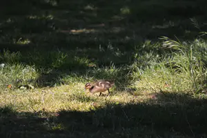 Afbeeldingen - https://afbeeldingen.net/foto/eendenkuiken-in-zonnig-gras-1298823