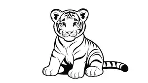 Download deze gratis schattige tijger welp zittend kleurplaat! Een allerliefste baby tijger in een perfecte zithouding met ronde mollige wangen en speelse oren. Deze kleurplaat is speciaal ontworpen voor jongere kinderen met eenvoudige maar duidelijke lijnen. Kinderen kunnen leren over verschillende dierenfamilies - van welp tot volwassen tijger. De vrolijke uitdrukking maakt dit een ideale eerste kennismaking met grote katten uit de jungle.