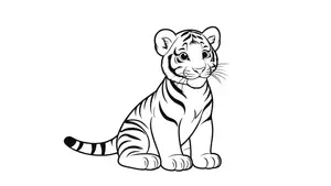 Download deze gratis vrolijke zittende tijger kleurplaat! Een charmante tijger met een grote glimlach die trots rechtop zit. De duidelijke lijnen maken het gemakkelijk voor kinderen van alle leeftijden om binnen de lijntjes te kleuren. Leer kinderen over bedreigde diersoorten terwijl ze plezier hebben met inkleuren. Deze tijger kan traditioneel oranje-zwart gekleurd worden of kinderen kunnen hun fantasie gebruiken met roze, blauw of paarse tijgers!